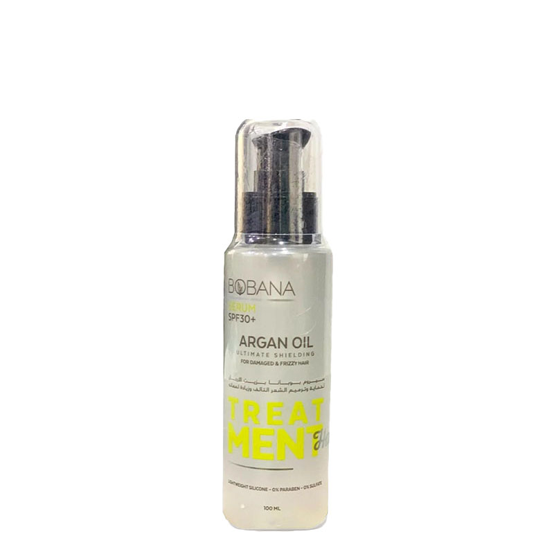 سيروم بوبانا بزيت الأرجان (100 مل) هو منتج للعناية بالشعر يهدف لـ تنعيم وترطيب الشعر وتقليل الهيشان والتقصف، ويعمل كـ درع حماية من حرارة التصفيف والأشعة فوق البنفسجية، ويوفر لمعاناً فائقاً دون إحساس دهني، وهو مناسب لكل أنواع الشعر وتركيبته خفيفة وسريعة الامتصاص، ويستخدم بعد الغسيل أو قبل التصفيف للحصول على شعر أكثر صحة وحيوية.